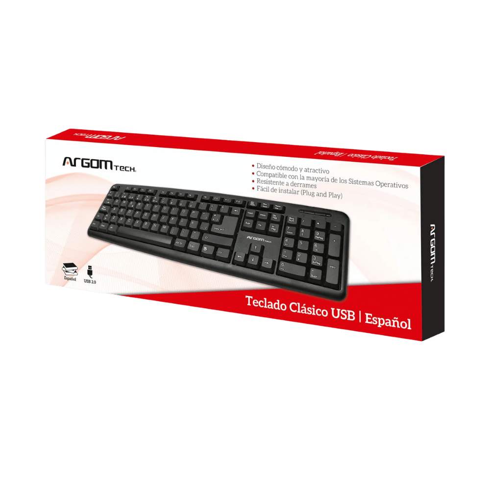 TECLADO ARGOM CLÁSICO USB EN ESPAÑOL CON DISEÑO DELGADO Y DURABLE