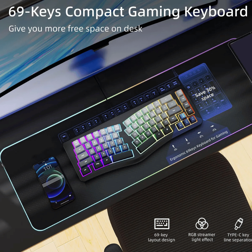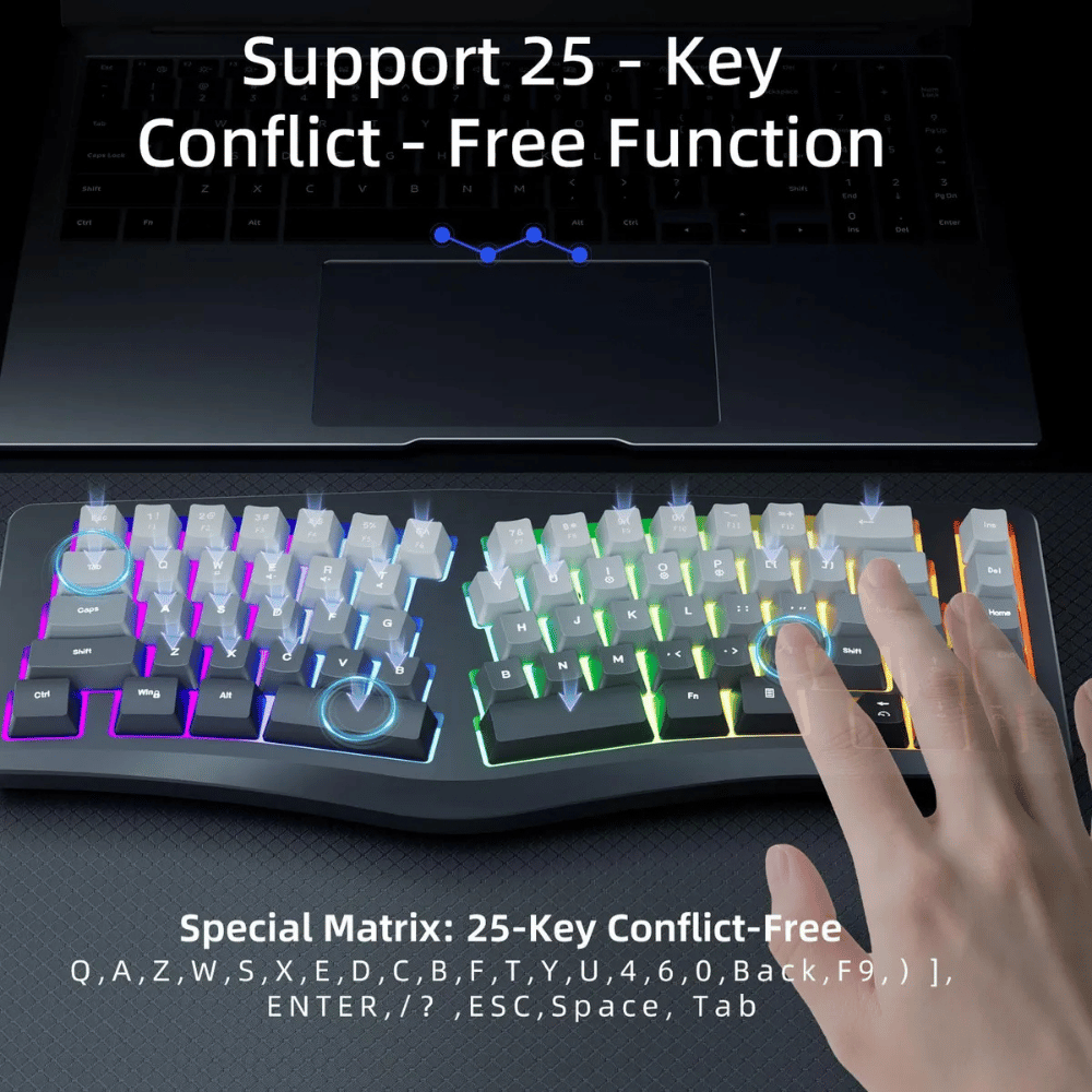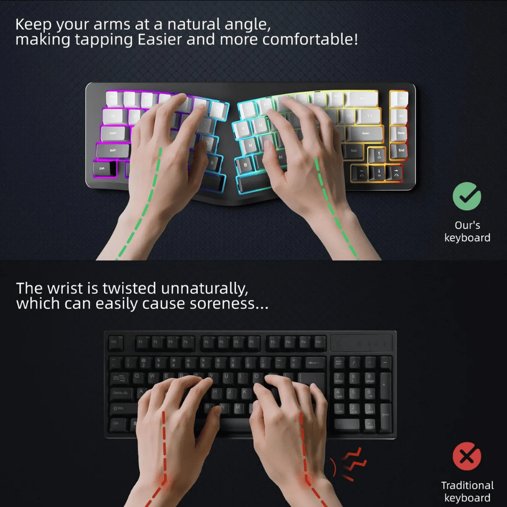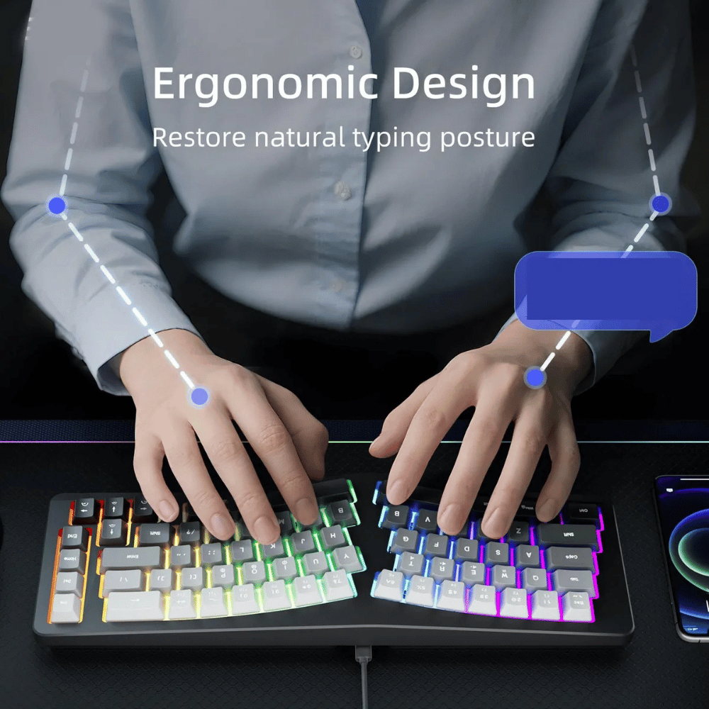 TECLADO GAMER ERGONÓMICO RGB ALÁMBRICO | COMODIDAD Y CONTROL PARA LARGAS SESIONES