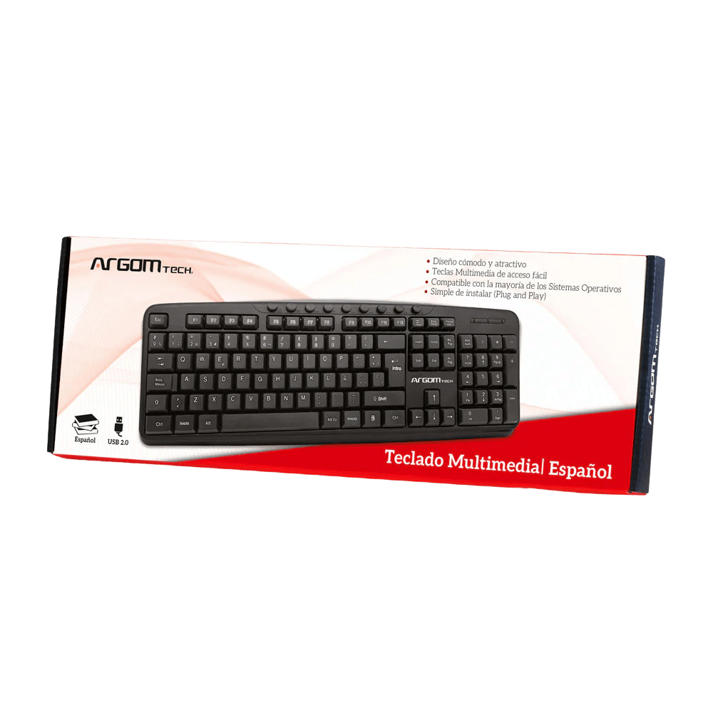 Disfruta de una escritura cómoda y eficiente con el teclado multimedia Argom USB en español, diseñado con teclas resistentes, acceso rápido a funciones multimedia y conexión plug and play, ideal para trabajo y entretenimiento.