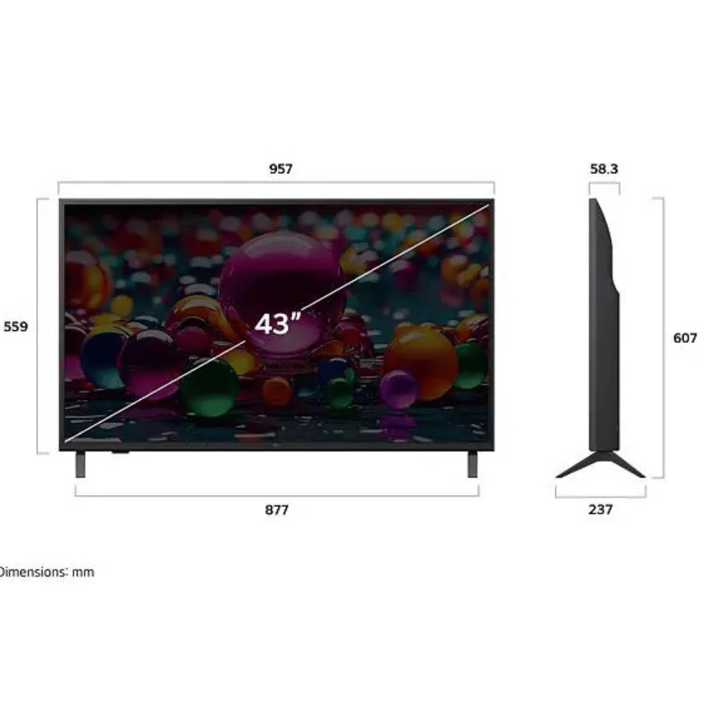 El TV LG 43UA7300PSB de 43” combina resolución 4K UHD, procesamiento con IA y un diseño moderno para ofrecer una experiencia visual y sonora personalizada, ideal para el hogar o espacios de hospitalidad.