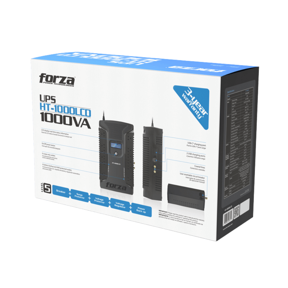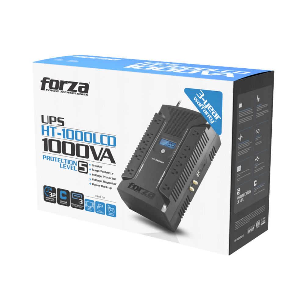 UPS FORZA HT-1000LCD 1000VA/600W – PROTECCIÓN AVANZADA CON PANTALLA LCD Y 12 TOMAS