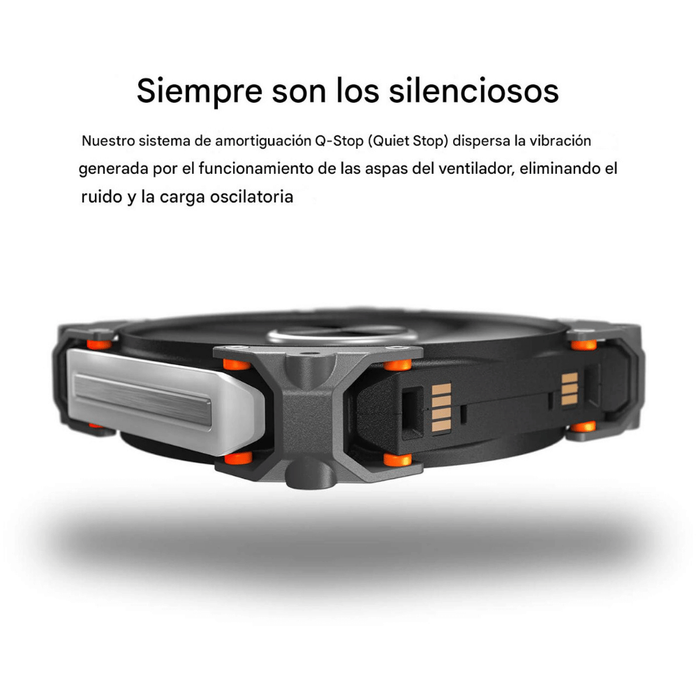 La doble supresión de vibración elimina ruidos y oscilaciones producidas por el giro de las aspas, ofreciendo una experiencia de uso más silenciosa sin reducir el rendimiento térmico.
